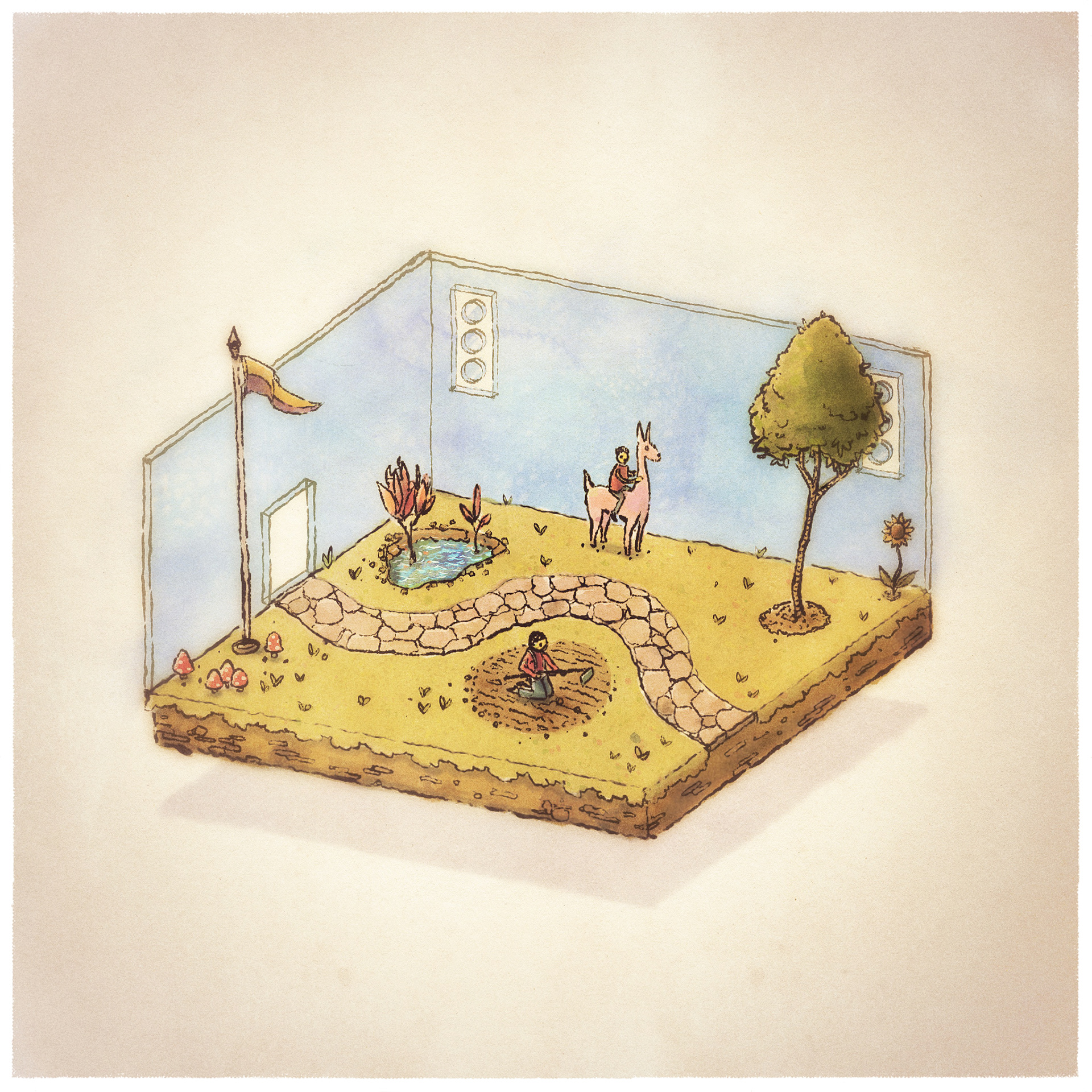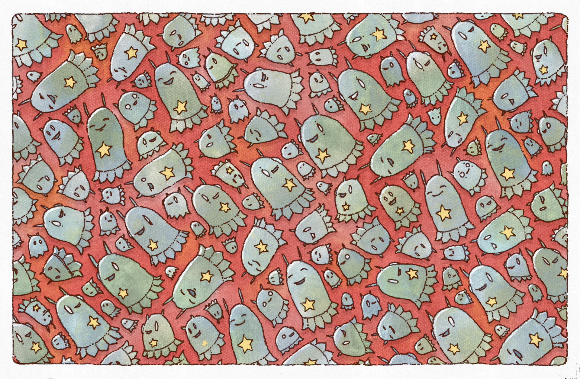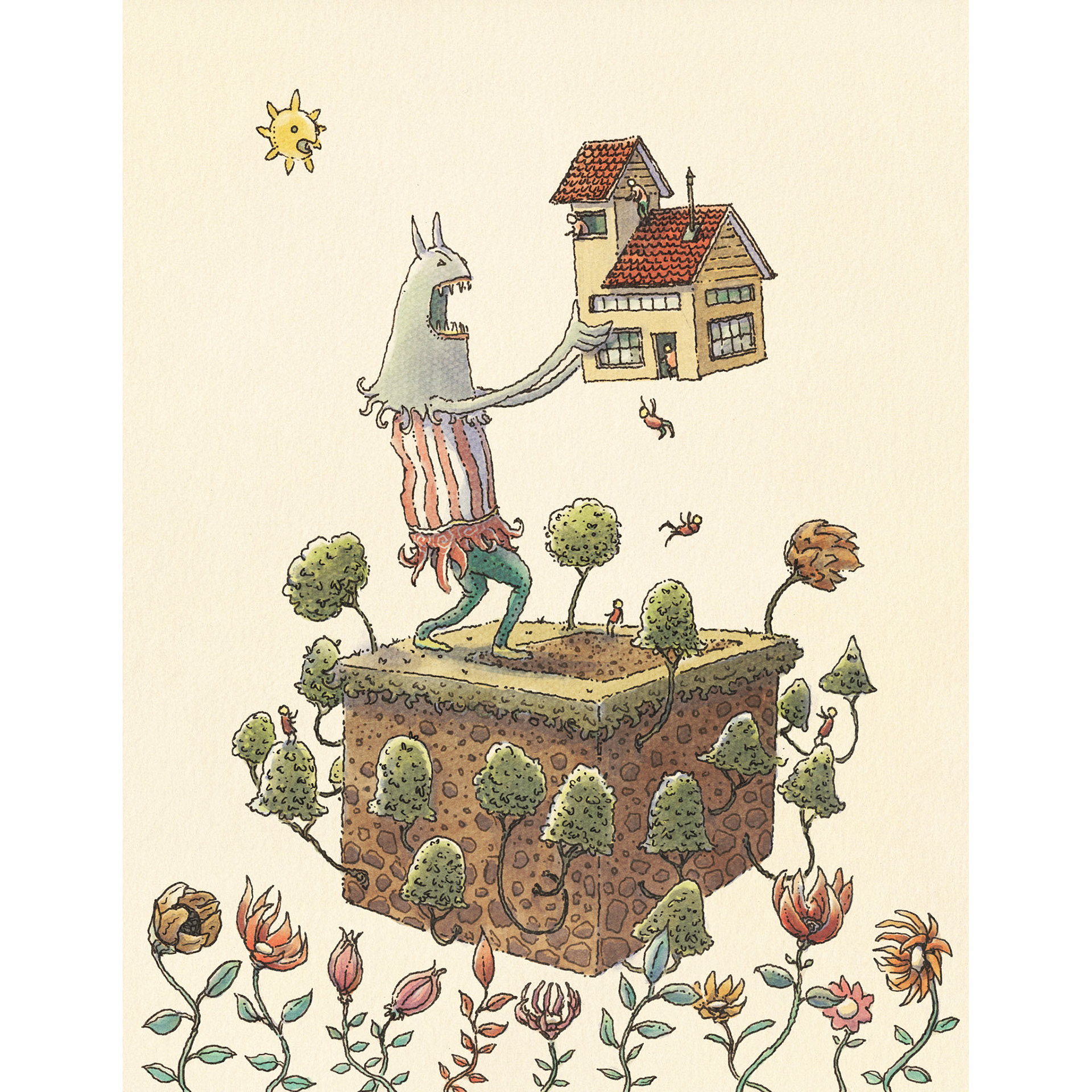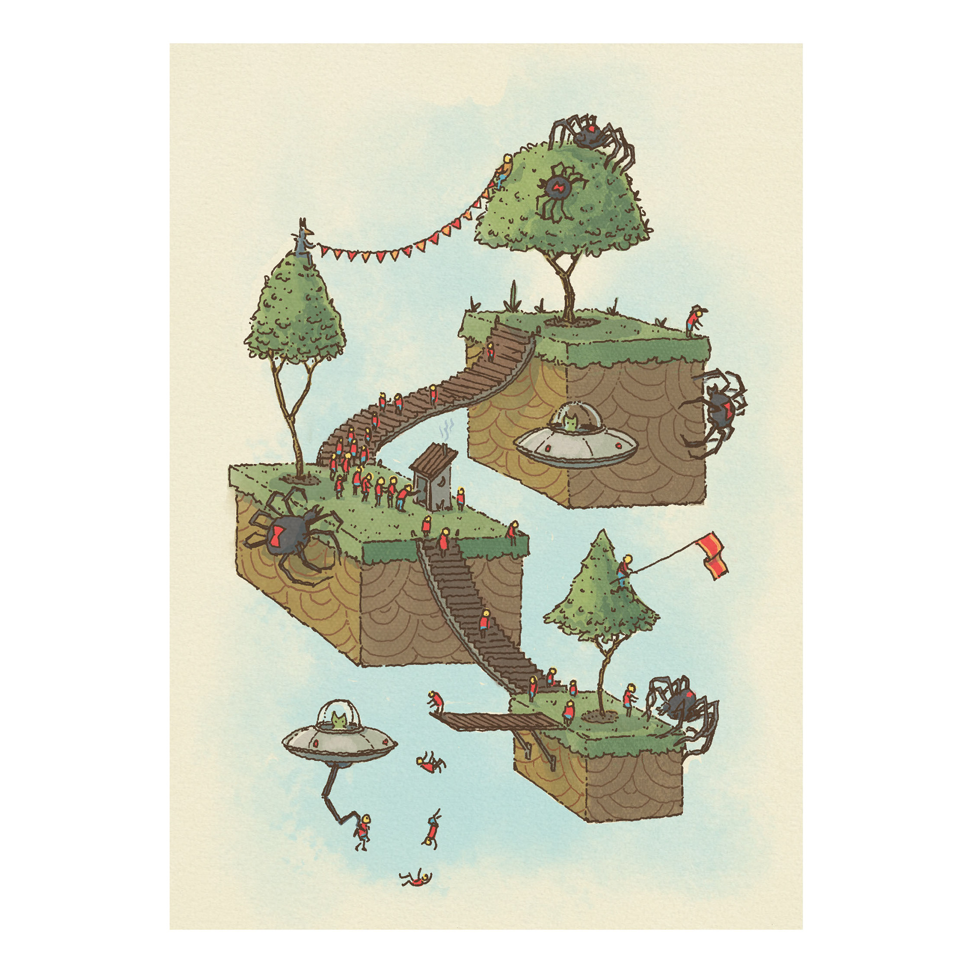 A collection of illustrations with pen & ink drawings digitally colored in Photoshop, Procreate, and Rebelle 3.