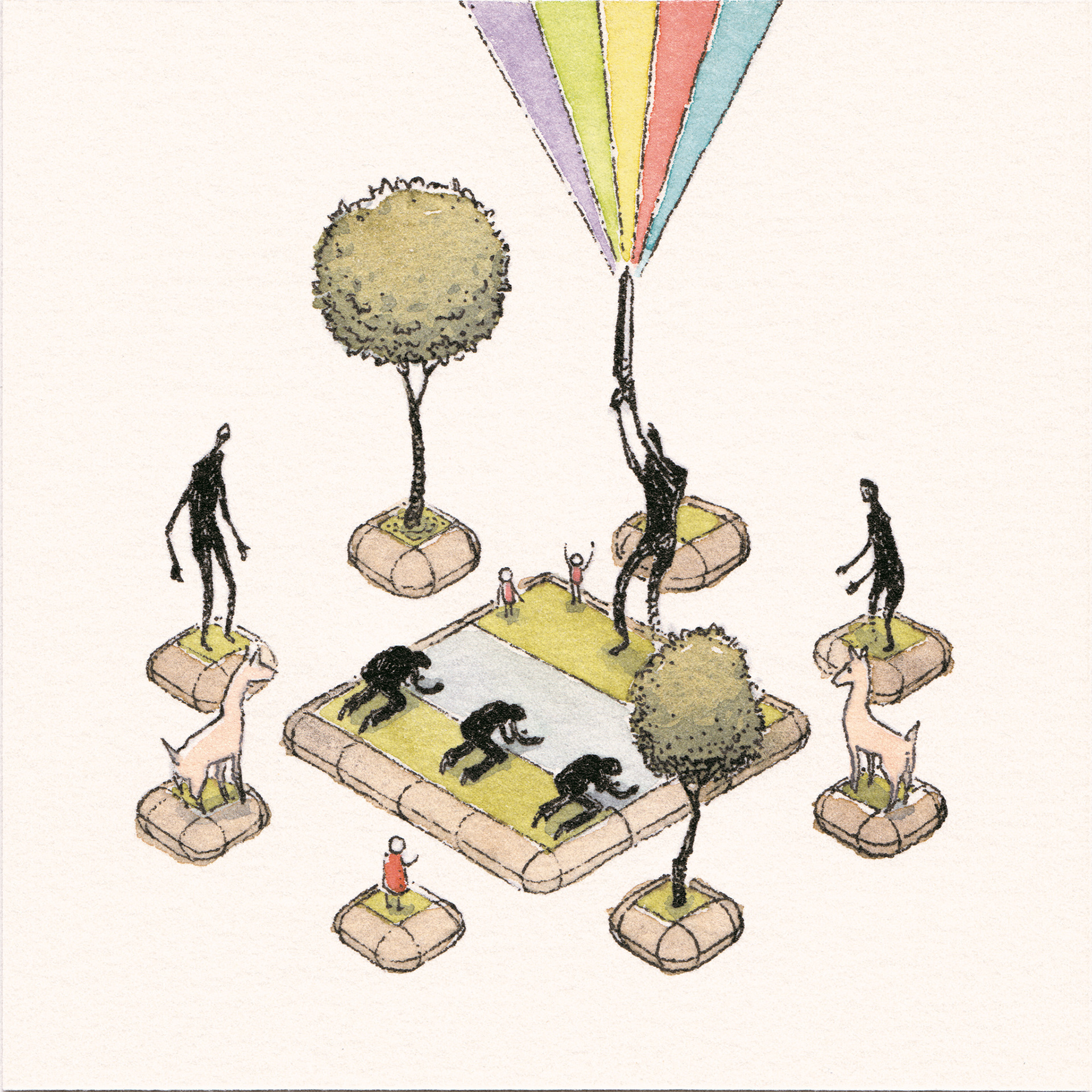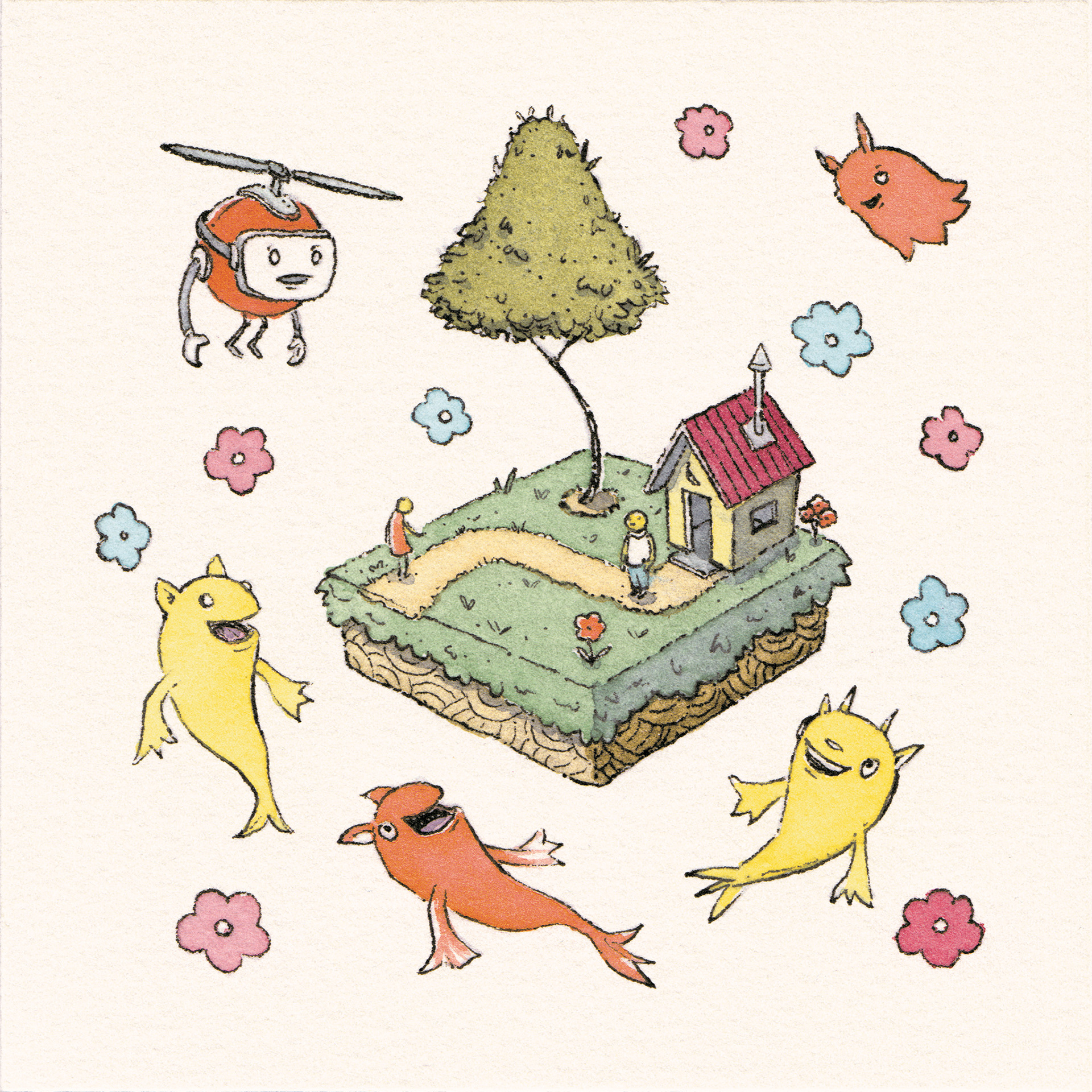 A set of pen & ink with watercolor drawings. Photoshop was critical to make the scanned art look like the real art.